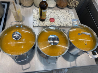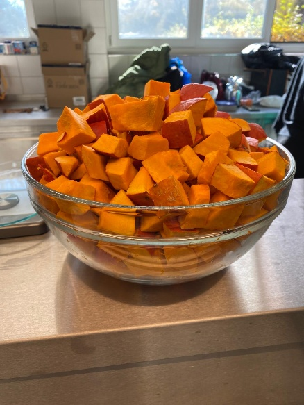 Aus Hokkaido-Kürbissen kochte der Förderverein literweise Suppe, um die Schülerinnen und Schüler, sowie später am Nachmittag die geladenen Eltern zu versorgen.
